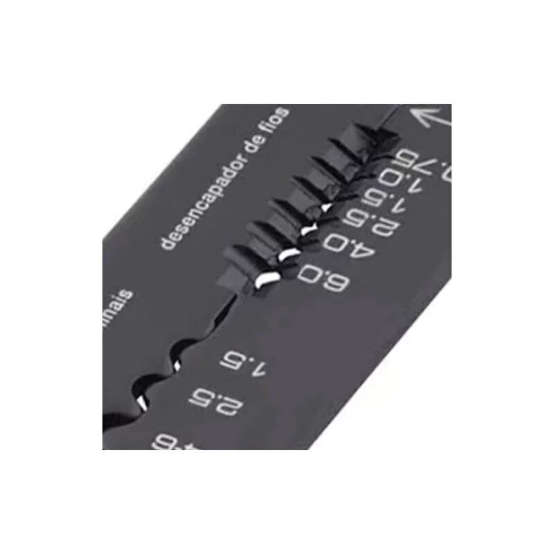 Indicado para cortar fios até 4 mm², prensar terminais de 1,5 mm² a 6 mm² e desencapar fios de 0,75 mm² a 6 mm²