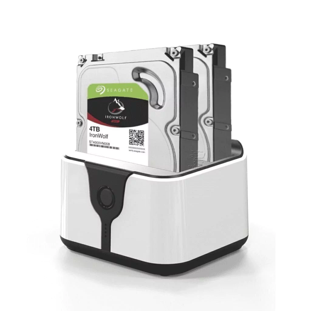 A clonagem é feita apenas com dois HDs Externo inseridos no dock e com apenas um toque no botão Clone.